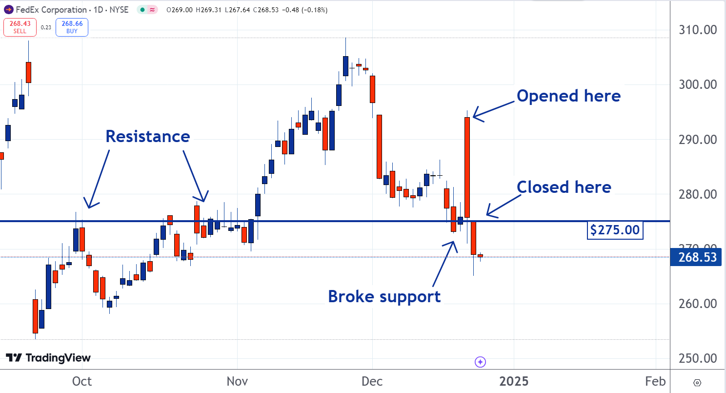 On December 20, FedEx opened about $20.00 higher than the previous day’s close. Traders and investors thought the news and earnings were bullish.